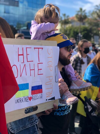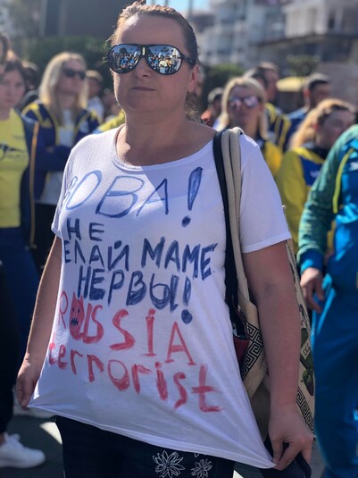 На мітингу виступали наші громадяни із закликами до країн світу підтримати Україну, запровадити санкції проти Росії, а до росіян – не мовчати і виходити на мітинги проти дій путіна» пише жінка.
