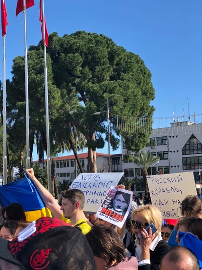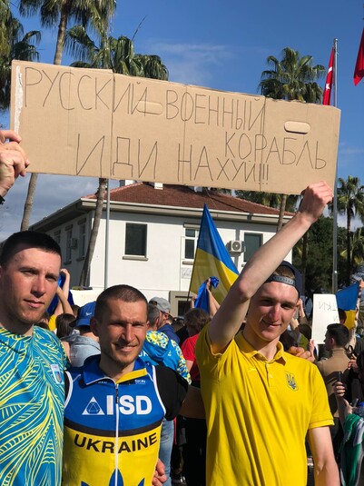 Сьогодні в турецькій Аланії відбувся мітинг проти російської агресії. На акцію протесту вийшли українці, які проживають в Аланії, наші спортсмени та співвітчизники, які застрягли за кордоном через розв’язану путіним війну.