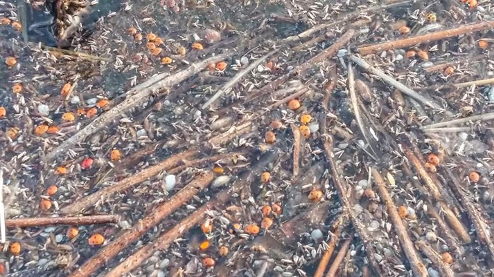 Русєв продемонстрував фото величезної кількості загиблих сонечок, які стають їжею для інших тварин, особливо для бокоплавів, яких в солоних лиманах безліч.