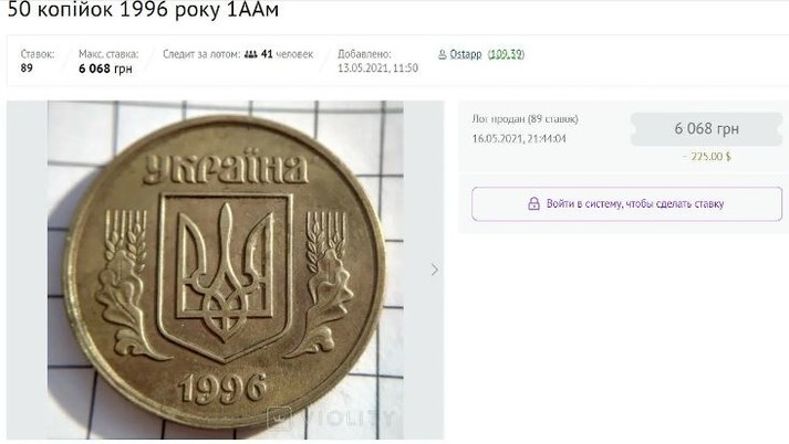 В Україні за монети номіналом у 50 копійок 1992 і 1996 років випуску готові платити тисячі гривень. На аукціонах за такі монети змагаються десятки покупців. Про це стало відомо з даних аукціону Violity.