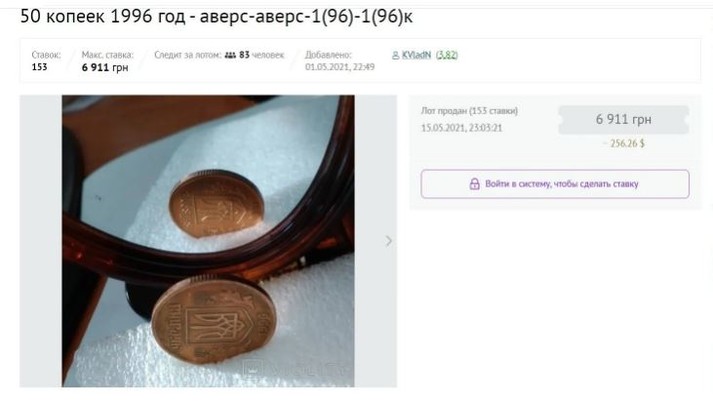 Монету в 50 копійок продали за тисячі гривень (фото)