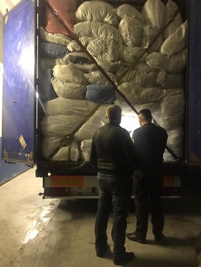 «Уже після відкриття вантажівки стало зрозуміло, що її вміст не відповідає заявленому в документах. З кузова вивантажили близько 4-х тонн нового краму: сорочки, штани, спідниці - майже 8 тисяч одиниць товарів більше сотні найменувань. Сума оцінки затриманого вантажу складає близько 12 млн грн», - йдеться у повідомленні.