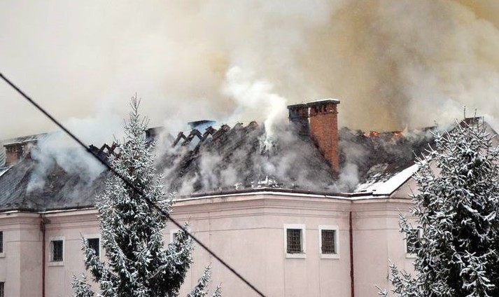 Сьогодні в Ужгороді (обласний центр Закарпаття) зайнялася будівля СІЗО, горить дах. Наразі там працюють пожежники та рятувальники - загалом 11 машин техніки та 40 чоловік особового складу.