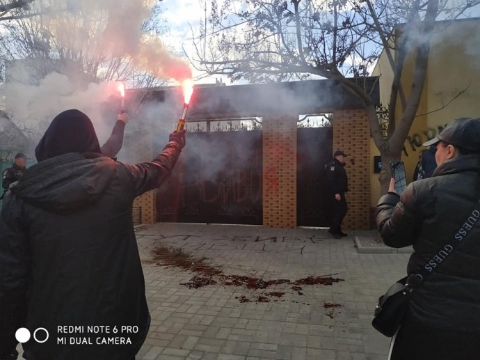 В Херсоні у четвер, 28 березня, активісти на підтримку ініціативи «Хто замовив Катю Гандзюк» закидали петардами приватний будинок заступника голови Херсонської ОДА Євгена Рищука.