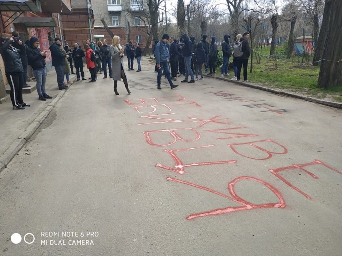 Активісти розмалювали ворота та асфальт біля будинку Євгена Рищука написами «Тут живе вбивця»