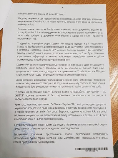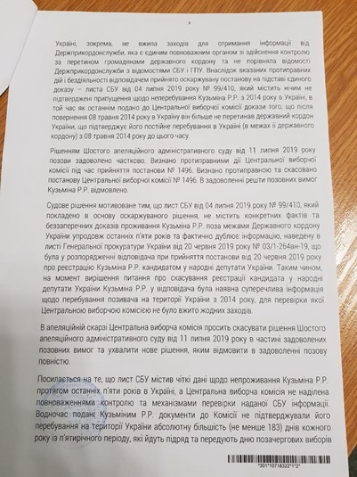 Як відомо, напередодні адвокат Кузьміна Артем Захаров повідомив, що Шостий апеляційний адміністративний суд відмінив постанову Центральної виборчої комісії про скасування реєстрації Кузьміна як кандидата в народні депутати України.