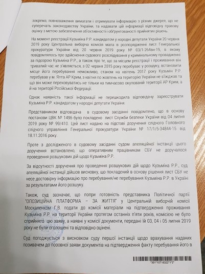 Нагадаємо, раніше Центральна виборча комісія скасувала реєстрацію Кузьміна кандидатом у народні депутати від партії «Опозиційна платформа - За життя» в багатомандатному виборчому окрузі.