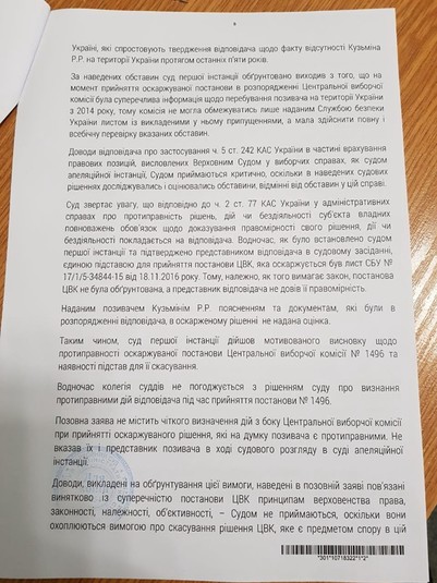 Апеляційний суд визнав незаконним скасування реєстрації кандидатом у нардепи Кузьміна Рената Кузьміна кандидатом у народні депутати. Чиновник-втікач допущений до участі у виборах.