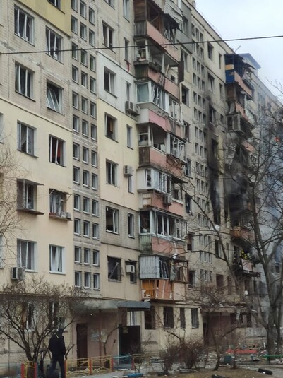 Обстріл столичної Оболоні: у дев'ятиповерхівку влучив снаряд (фото, відео)
