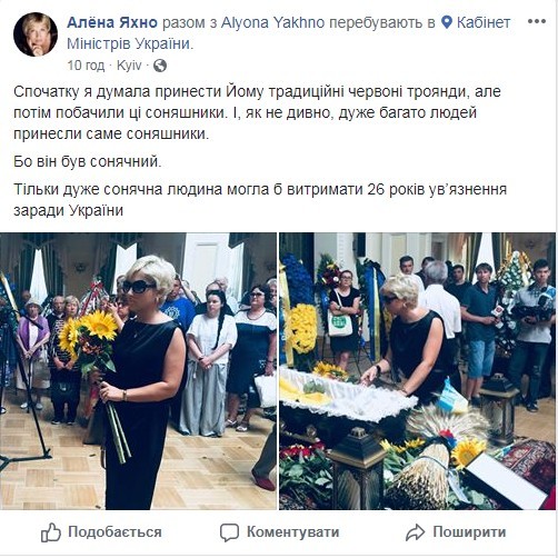 «Є повна дисгармонія між щирою скорботою і позерством біля труни, цими ужимочками, як не забути зробити фоточку і якнайшвидше викласти. Навіщо так вулагиризувати, опошлювати прощання з Людиною?», - резюмувала віце-спікер Ради.