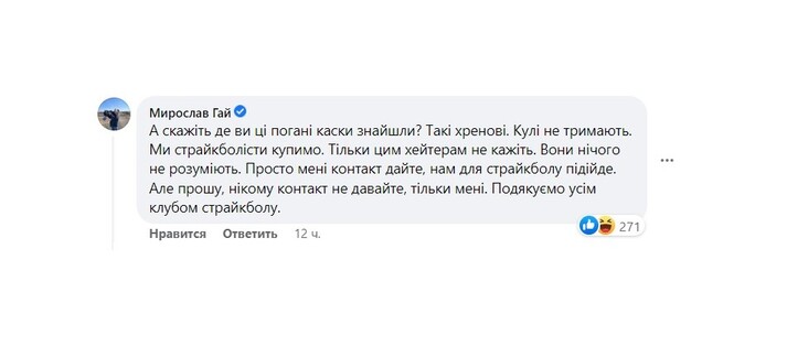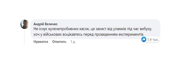 «Стріляти майже впритул, ви серйозно? З гвинтівки, пістолета чи автоматичної зброї? Ви маркування дивились, в інструкцію заглядали, який рівень захисту і для чого розібрались? Ну певно що ні, але дивуєтесь «ой, не витримав, значить поганий шолом»?» – пишуть в коментарях.