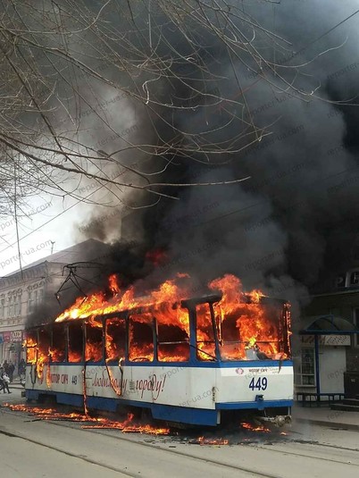 Під час поїздки трамвай раптово охопив вогонь