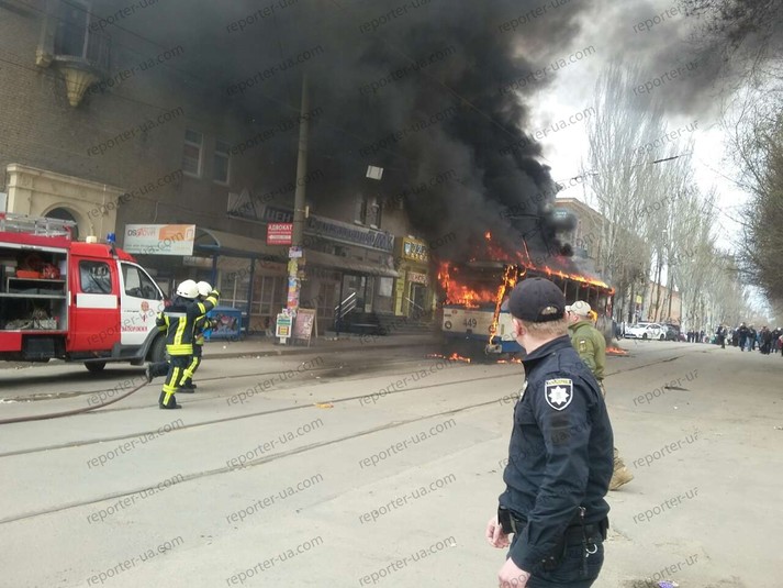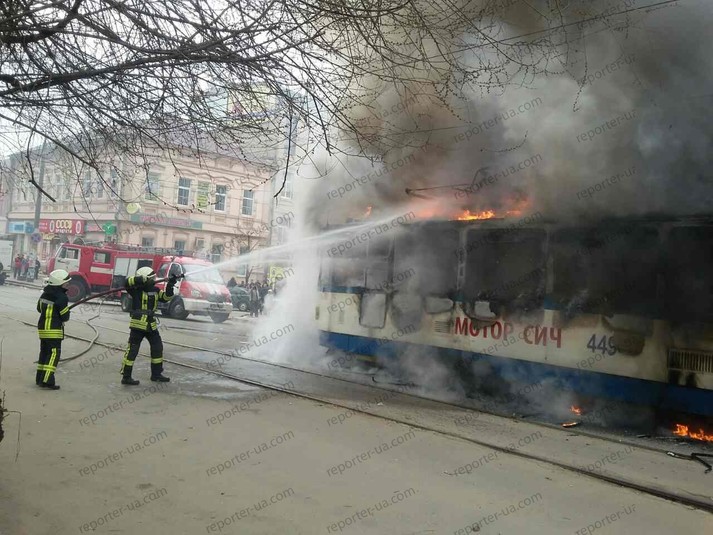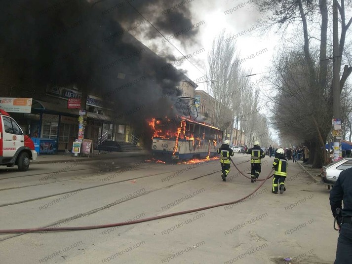 Сьогодні, 27-го березня, на зупинці «Вул. Базарна» у Запоріжжі загорівся трамвай з пасажирами. Про це повідомляє місцеве видання «Репортер».