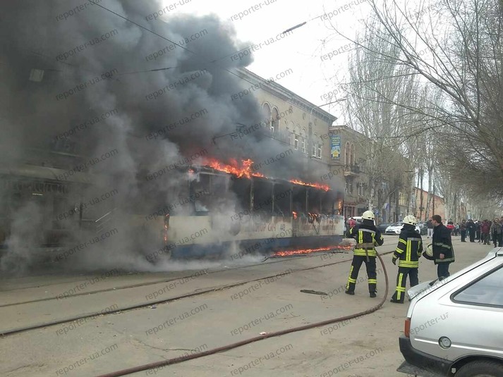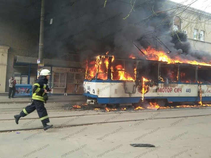 Наче смолоскип: у Запоріжжі загорівся трамвай з пасажирами (оновлено)