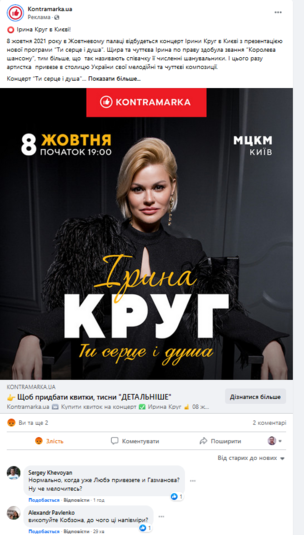 Цікаво, що реклама заходу за участі російської співачки стоїть поряд з анонсами таких український зірок, як Монатік та Тіна Кароль. На чому ж базується відбір знаменитостей для виступів на українських майданчиках, на це питання підписників представники сервісу з продажу квитків відповіді не дали.