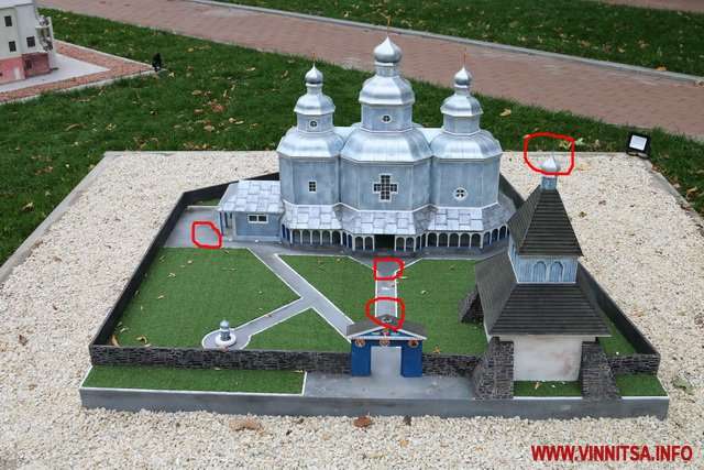 У Вінниці в Центральному парку навколо локації «Міні Вінниці» встановили металеву огорожу, але це не вберегло від вандалізму: вже вкрали всі фігурки чоловічків, повідривали хрести з макетів, відірвали стрілки на годиннику копії Вежі.