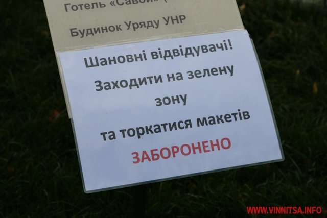 «З 19 по 22 вересня ми закрили для відвідувачів «Міні Вінницю». Потрібно зробити обмеження, відреставрувати моделі, встановити правили поведінки під час відвідування, вільний доступ приносить факти вандалізму. Люди лізуть через огорожу і під огорожу… Зривають хрестики, фігурки розікрали всі, вже немає жодної. Це жах… Ми хочемо кожного року додавати сюди об’єкти, щоб людям було цікаво», - сказав Любовський.