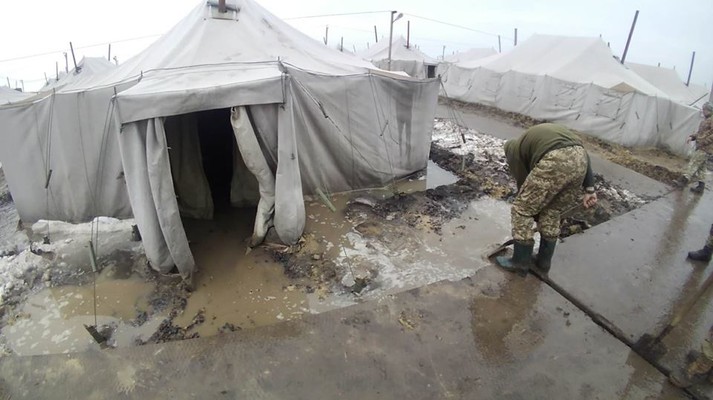 «Ситуація, що склалася через складні погодні умови в Україні, в тому числі і на Миколаївщині, коли впродовж останнього часу випало дві місячні норми опадів, наслідком яких стало погіршення побутових умов у наметовому містечку та інші незручності, оперативно виправлені в найкоротший термін, відновлено функціонування дренажної системи та продовжується підтримання у належному стані іншої інфраструктури табору», - сказано в публікації військового командування.