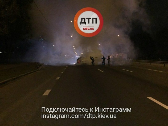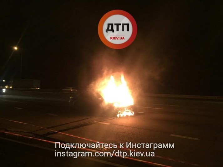 У Києві на Столичному шосе в неділю пізно ввечері відбулося зіткнення двох автомобілів, внаслідок чого один із них загорівся, а другий опинився в кюветі.