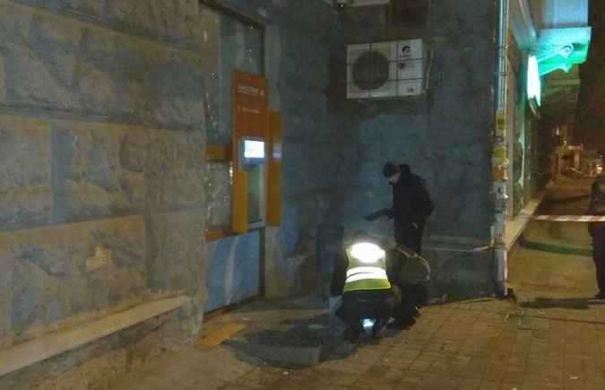 На місце події прибули кілька патрулів поліції і експерти, які встановлять тип вибухівки. За попередніми даними біля банку розірвалась граната РГД-5. Поліція не виключає варіант, щo причиною вибуху міг бути саморобний пристрій.