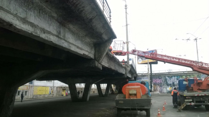 «Втомлений» міст на Шулявці перевірять на міцність, пустивши два самоскиди вагою 66 тонн
