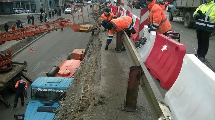 Місце обвалу комунальники огороджують відбійником.