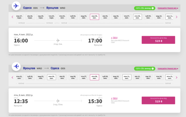 Поки на сайті WizzAir можна забронювати квитки для вильоту з Києва та Одеси