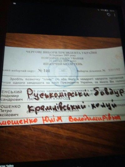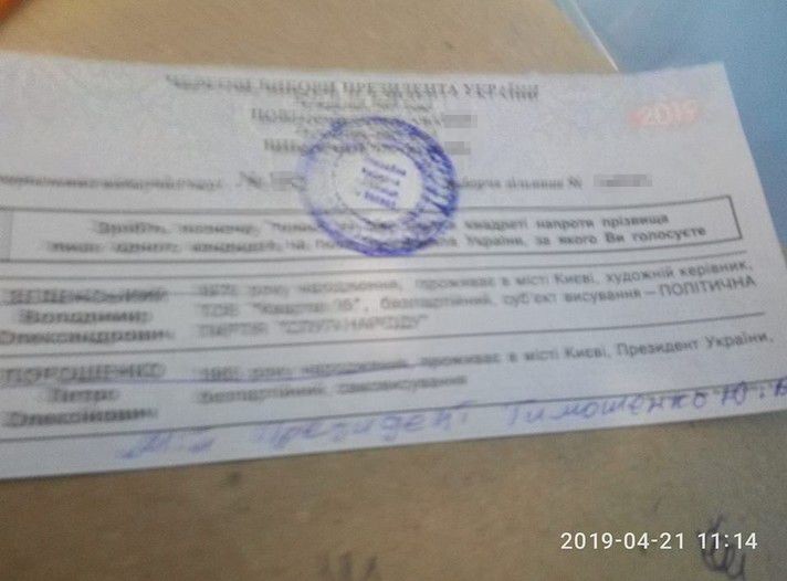 Частину бюлетенів зіпсували, зокрема, прихильники Юлії Тимошенко. У соцмережі Facebook вони виклали бюлетені з галочкою за «свого» кандидата.