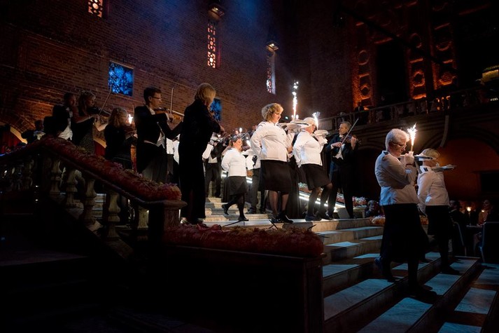 Король Швеції Карл XVI Густав вручив дипломи й медалі професору з Японії Есінорі Осумі, який став володарем нагороди з фізіології або медицини; трьом фізикам - Девіду Таулессу, Данкану Холдейну і Майклу Костерліцу; володарям нагороди з хімії - Жан-П'єру Саважу, Фрейзеру Стоддарту і Бернарду Ферінгу.
