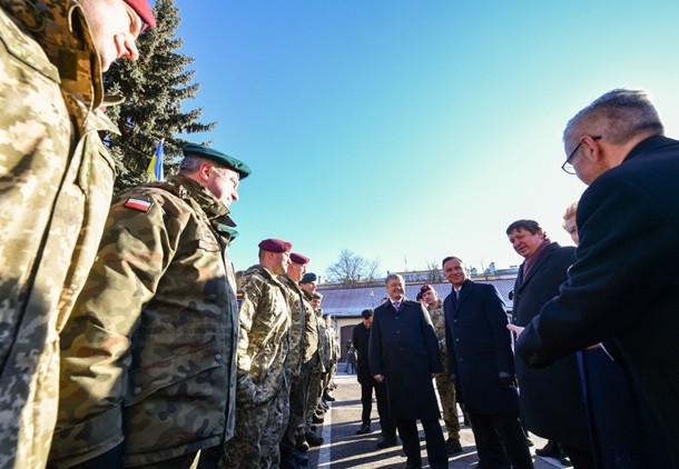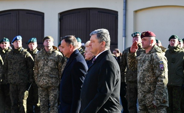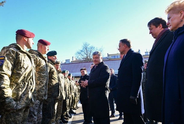 Президенти України, Польщі та Литви Петро Порошенко, Анджей Дуда та Даля Грібаускайте зустрілися з особовим складом спільного українсько-польсько-литовського військового підрозділу «ЛитПолУкрбригу» імені Великого гетьмана Костянтина Острозького в Любліні. Про це повідомляє прес-служба президента України в п'ятницю, 22 лютого.