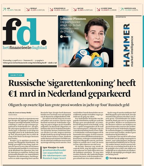 Газета Het Financieele Dagblad опублікувала статтю «Російський «цигарковий король» «припаркував» 1 млрд євро в Нідерландах».