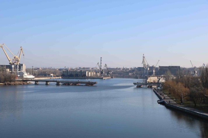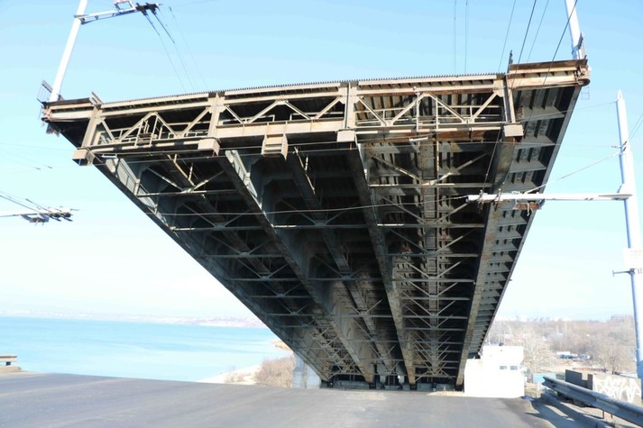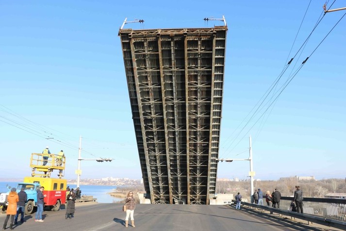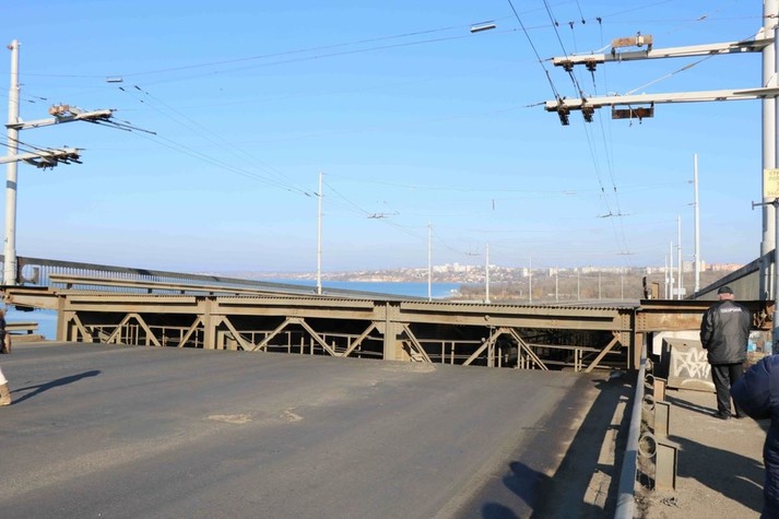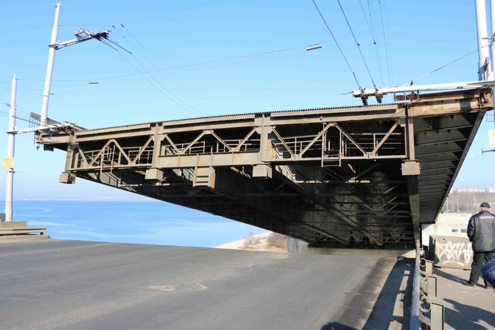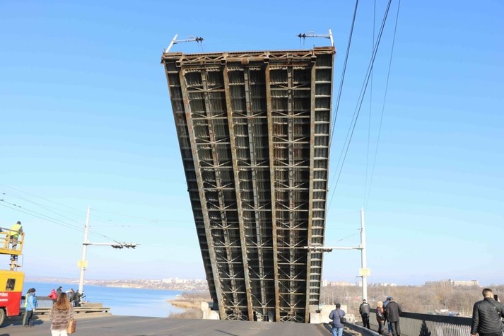 Щоб пропустити корабель у Миколаєві розвели одразу три мости - Південнобузький, Інгульський та пішохідний понтонний через річку Інгул, повідомляє кореспондент Укрінформу.
