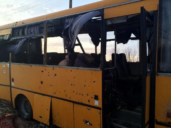«13-го січня 2015 року о 14:15 терористи з боку окупованого Докучаєвська із реактивних систем залпового вогню «Град» відкрили вогонь по блокпосту №5 на трасі Маріуполь-Волноваха-Донецьк. Під обстріл потрапив рейсовий автобус, який рухався за маршрутом Златоустівка-Донецьк. В результаті влучення снаряда від численних осколкових поранень прямо на місці, в салоні автобуса, загинули 10 мирних жителів, ще 2 чоловік померли від страшних ран у лікарні, 18 людей отримали поранення. Сьогодні на місці трагедії відбувся реквієм у пам'ять людей, вбитих терористами», - йдеться у повідомленні.
