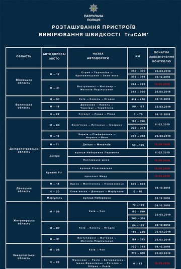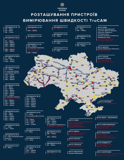 З понеділка на дорогах України побільшає приладів TruCAM (карта)