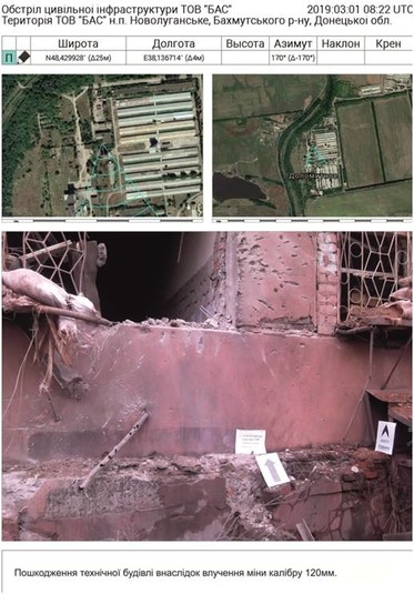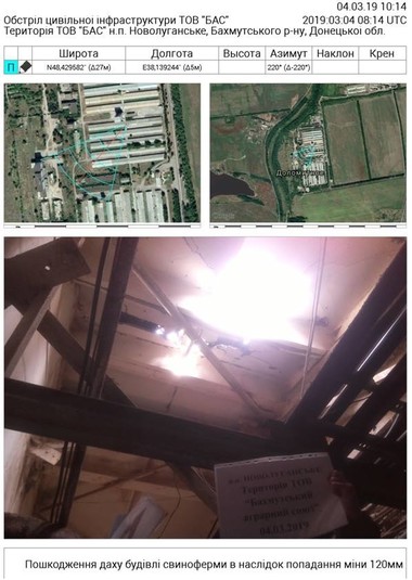 Майже у цей самий час 3 березня з населеного пункту Гольмівський окупантами було знову здійснено обстріл цивільної інфраструктури ТОВ «Бахмутський аграрний союз» у населеному пункті Новолуганське Бахмутського району Донецької області, із застосуванням міномету калібру 120 мм (11 мін). Внаслідок прямого влучення міни калібру 120 мм в господарчу будівлю агрофірми пошкоджено дах будівлі, газопровід, обладнання та вікна.