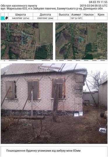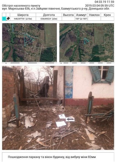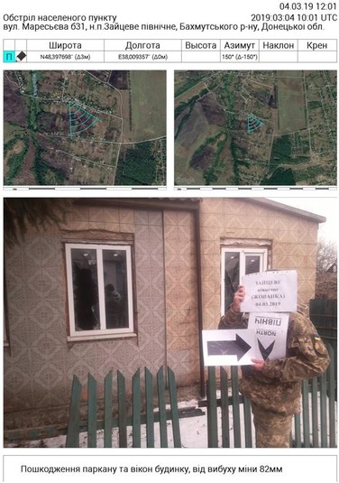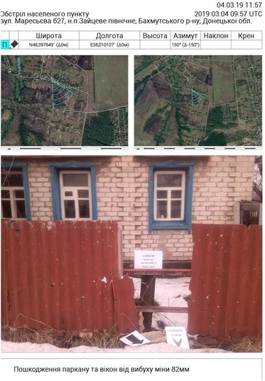 3 березня о 15:00 російсько-терористичними військами здійснено обстріл населеного пункту Зайцеве з мінометів калібру 82 мм (десять мінометних мін), дві з яких влучили у житловий сектор. Внаслідок цього пошкоджено фасад будинку за адресою вул. Маресьєва, 32. Власники будинку під час обстрілу знаходились на задньому подвір’ї. Також пошкоджено паркан та вікна будинків №№ 27, 31 та 36 на тій самій вулиці.