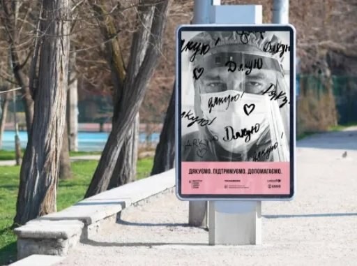 У травні в американському інформаційному агентстві Associated Press вийшов репортаж про те, що українські лікарні перевантажені хворими на коронавірус. На головному фото – лікар Іван Венжинович у захисному костюмі після огляду пацієнтів з коронавірусом. Згодом це фото розмістили в українських містах на білбордах із написом «Дякуємо за життя».