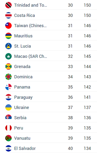 Позиція країни в рейтингу визначається кількістю країн, у які її громадяни можуть в'їжджати без попереднього оформлення віз (без візи або з візою після прибуття). Паспорти усіх розглянутих країн є біометричними.