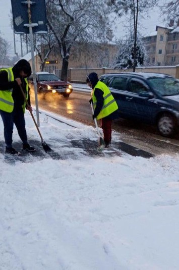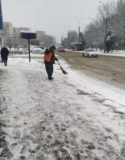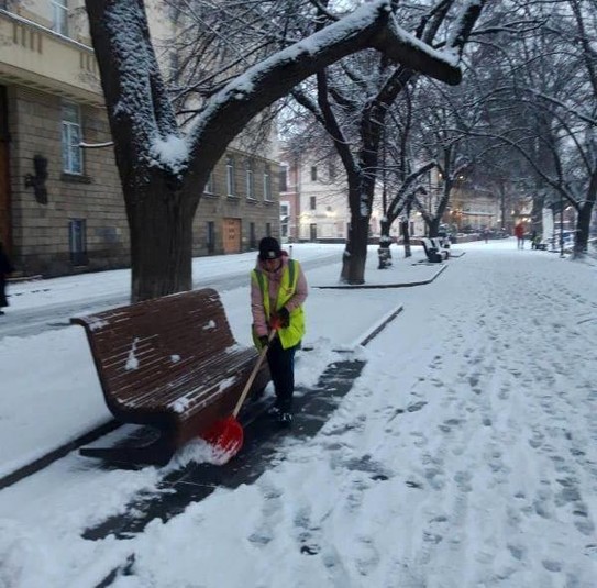 Працівники комунальних служб та підрядних організації усувають наслідки снігопаду в Ужгороді – прибирають сніг на площах, автобусних зупинках, пішохідних переходах.