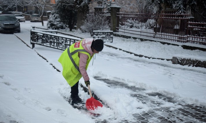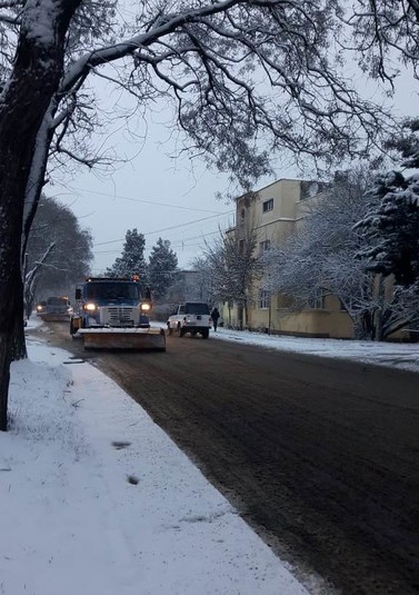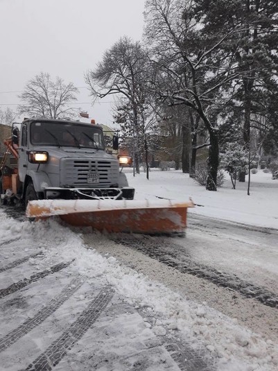 За допомогою спецтехніки розчищають основні магістралі, транспортні кола, підйоми. Роботи розпочали вночі, тривають вони і зараз.