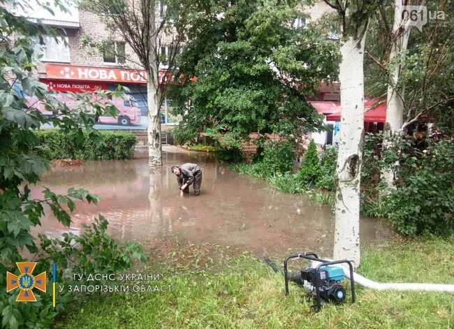 «Через велику кількість опадів відбулося підтоплення підвальних приміщень на вулицях Іванова, Моторобудівельників, Набережній та проспекті Собороному, а також на територіях двох приватних домоволодінь та прибудинковій території у місті Пологи», – зазначено в повідомленні.