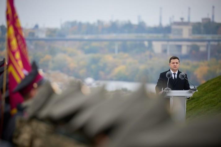 Звертаючи до ліцеїстів, президент сказав, що сьогодні, 14 жовтня, вони народжуються як майбутні захисники України.