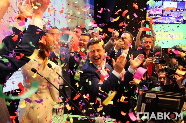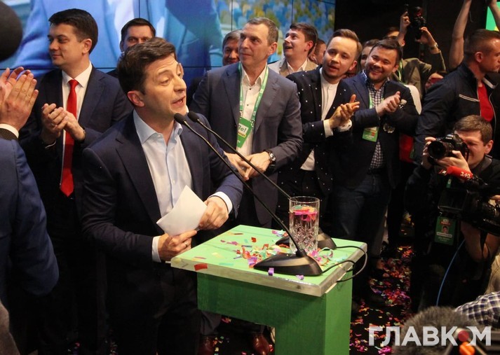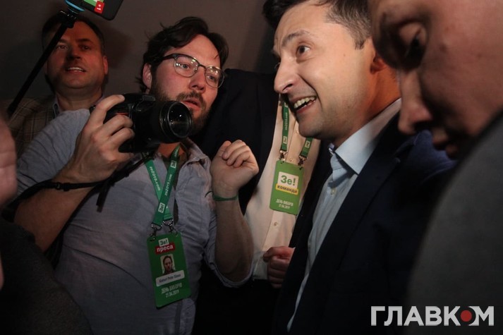 Кандидат у президенти та шоумен Володимир Зеленський після оголошення екзит-полів, за даними яких він є переможцем президентських перегонів, почав роздавати подяки.