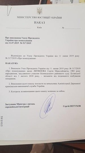 «Підписав наказ про негайне звільнення Сергія Литвінова з Диканівської виправної колонії», - написав Петухов.