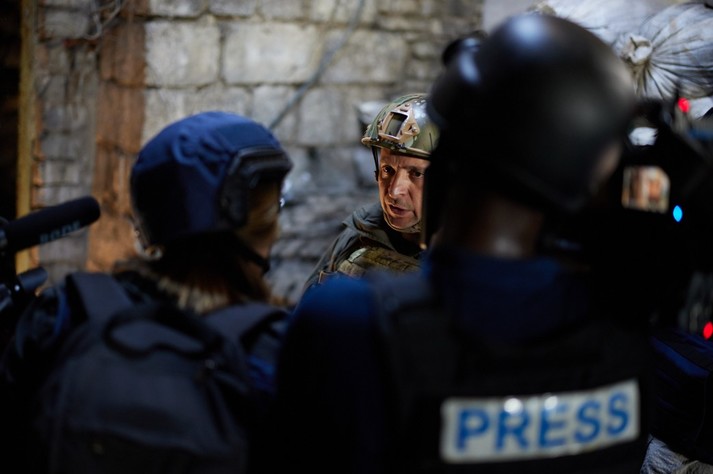 «Під час робочої поїздки на Донеччину президент України Володимир Зеленський відвідав передній край оборони, де останнім часом відбуваються ворожі обстріли. Українські позиції, на яких побував глава держави, розташовані за 700 метрів від противника», – йдеться у повідомленні.