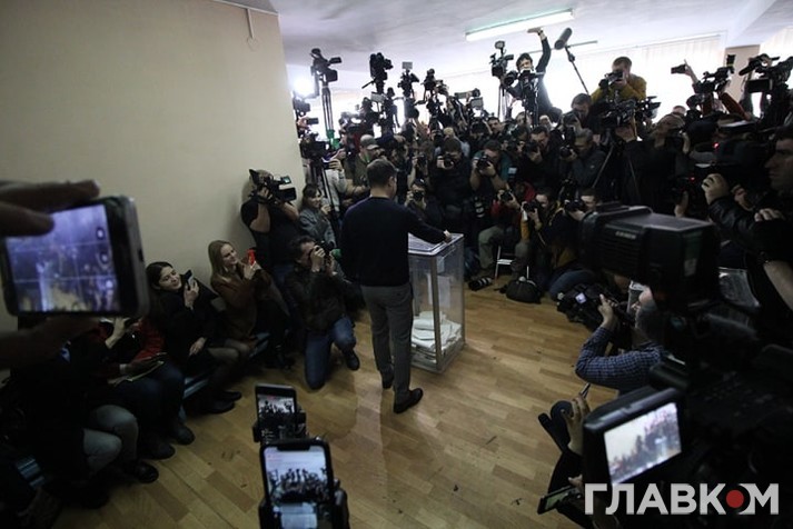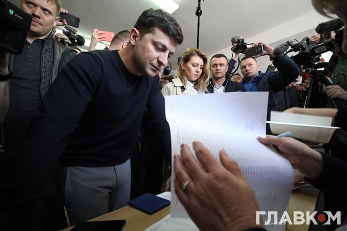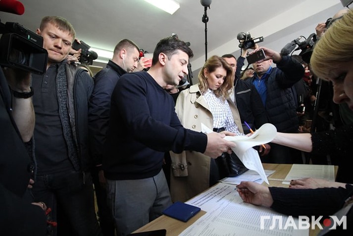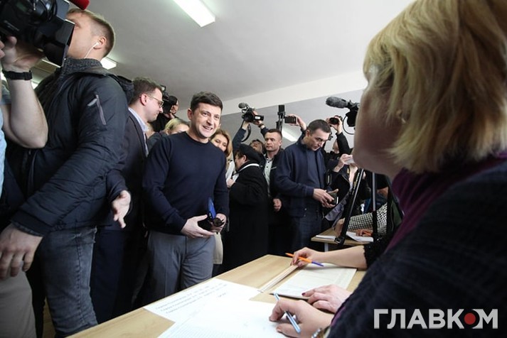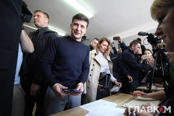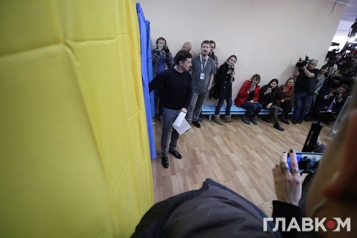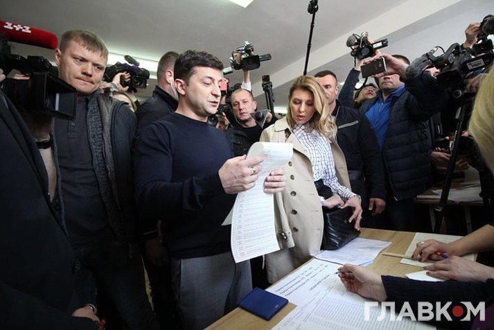 Шоумен і кандидат у президенти Володимир Зеленський проголосував у Києві на дільниці №800489, яка знаходиться за проспекті Героїв Сталінграду, 2, у Коледжі морського і річкового флоту