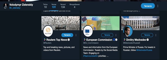 Зазначимо, що читачі відразу помітили та звернули увагу на те, що свій перший допис «Зеленський» й зробив російською мовою, а першими акаунтами, на які він підписався стали сторінки Кремля та прем'єра РФ Дмитра Медведєва.
