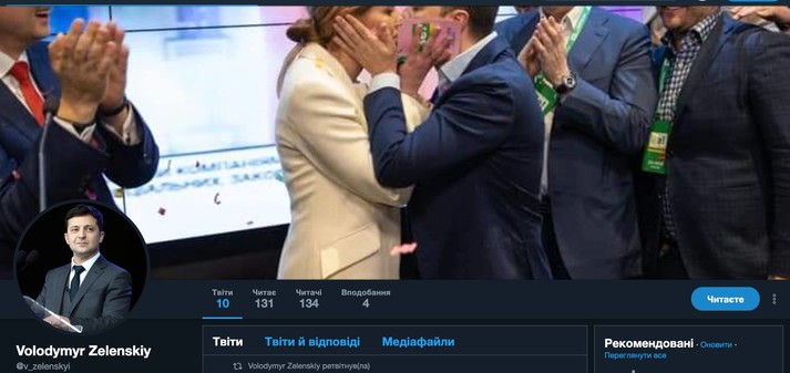 У мікроблозі Twitter створений акаунт нібито «президента України Володимира Зеленського». «Спасибі за довіру, Україно», - йдеться в першій публікації акаунта.