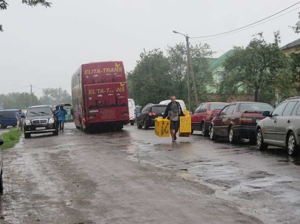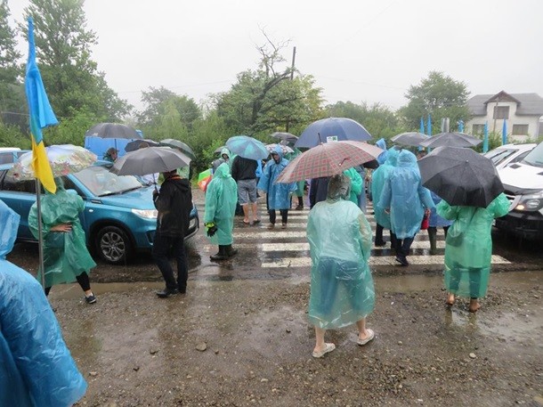Акція протесту триває вже другий день. Незважаючи на дощ, люди продовжують перекривати дорогу, пропускають тільки швидкі і машини з немовлятами.