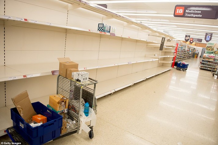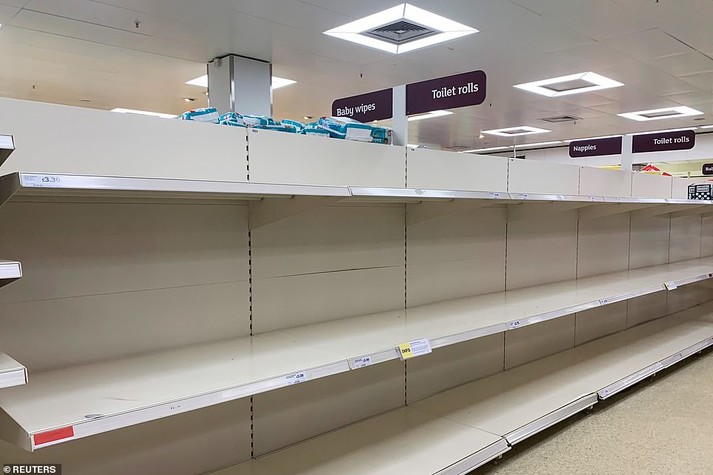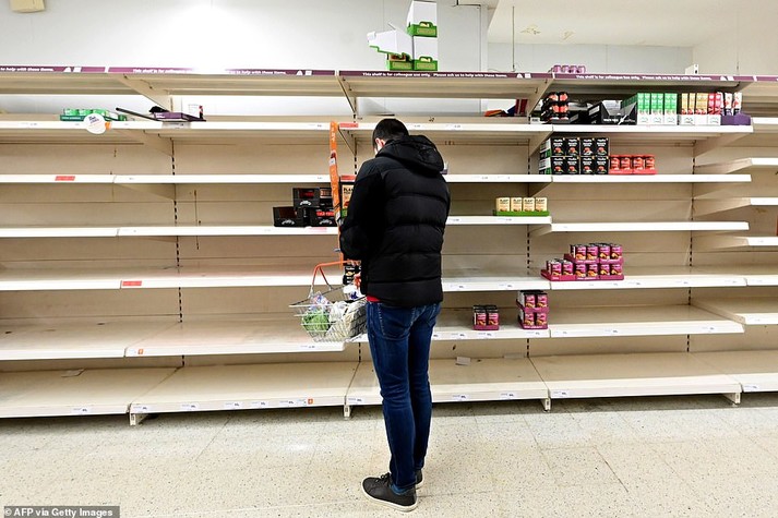 Жителі Великої Британії на тлі зростання панічних настроїв через коронавірус спустошують полиці в супермаркетах.